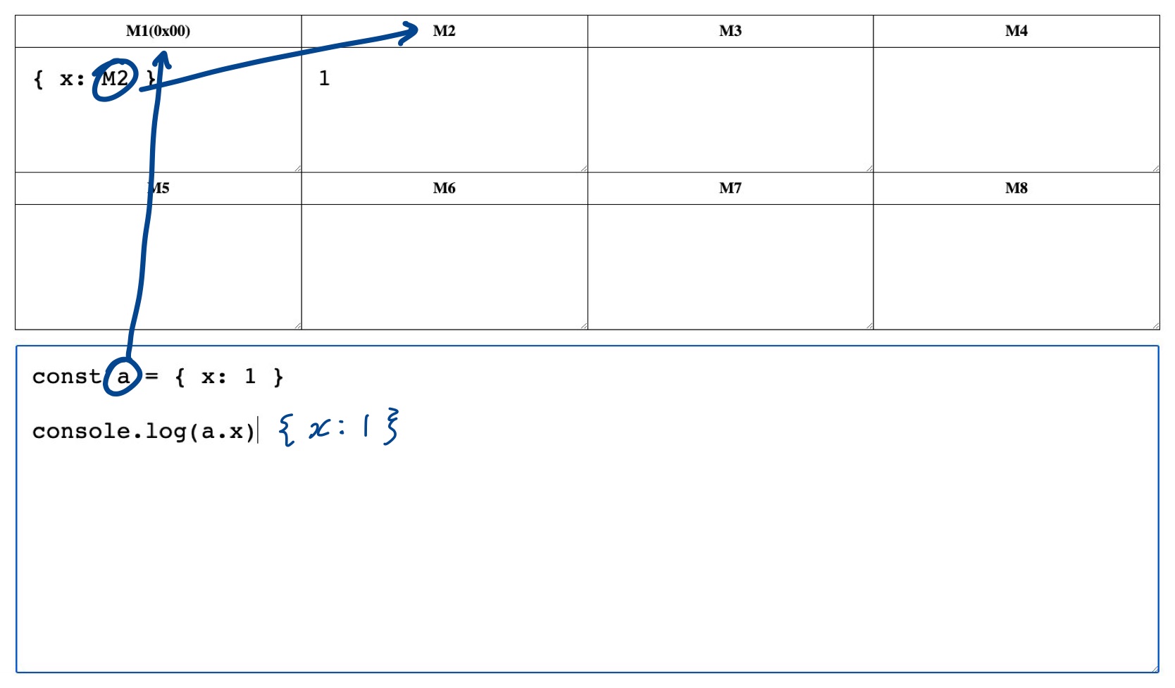 1. 변수 a에 객체 데이터 { x: 1 }이 할당된다