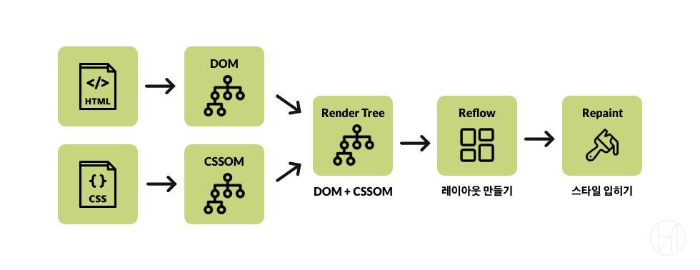 2.1 아래는 브라우저가 웹사이트를 화면에 구현하는 과정, 즉 브라우저 렌더링 순서다.