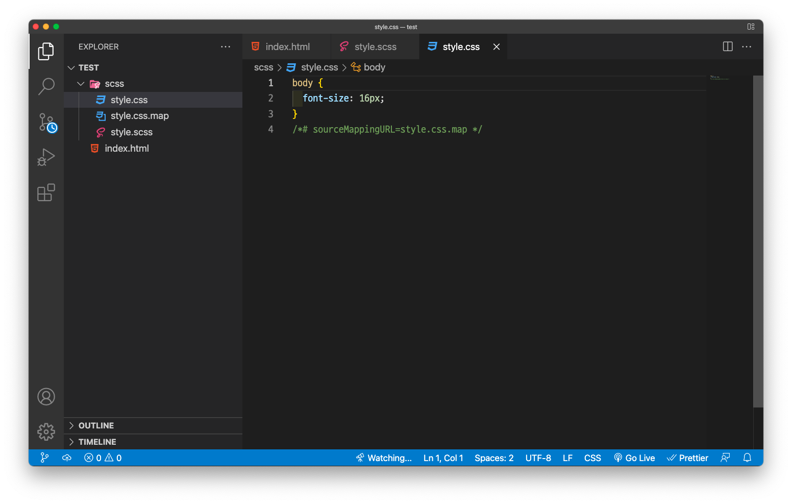 3. Watch Sass가 진행된 후에는 css, css.map 파일이 생성